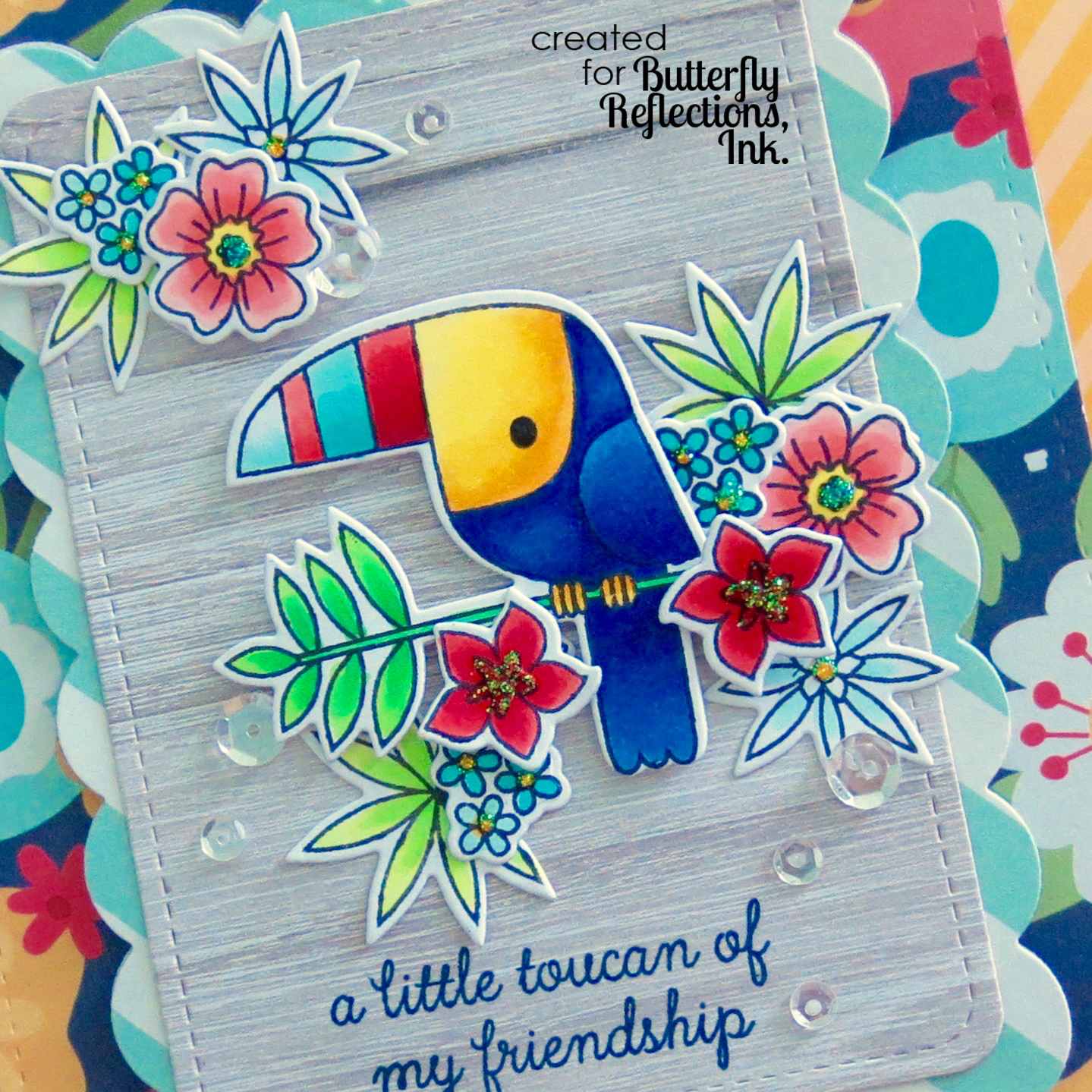 Hey friends, it's Christy with my last Friday Feature as part of the BRI design team. On Monday Vanessa will introduce a whole new team, and you guys are going to love them! So many talented ladies. My card today features the beautiful Reverse Confetti Toucan of Friendship. I colored my images with Copic markers to match my Simple Stories Faith patterned papers, then die cut them with the matching dies.