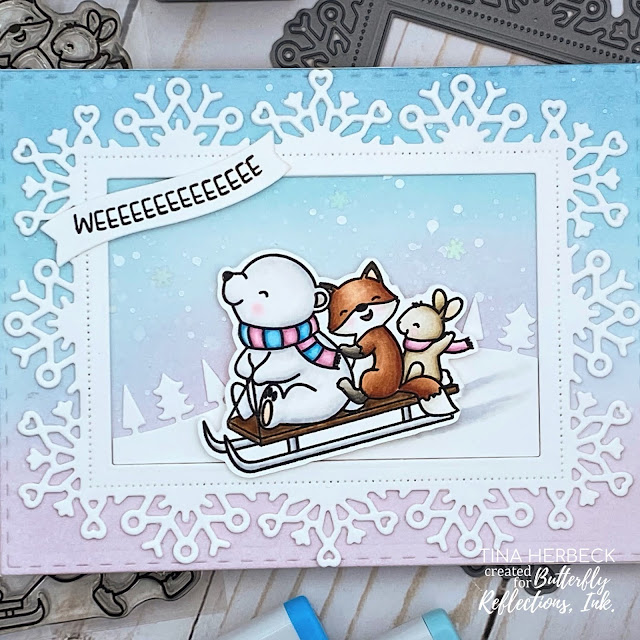 Hi everyone! Tina here with a winter themed card featuring some cuteness from Mama Elephant. I just adore these critters from the Dashin Thru the Snow stamps.